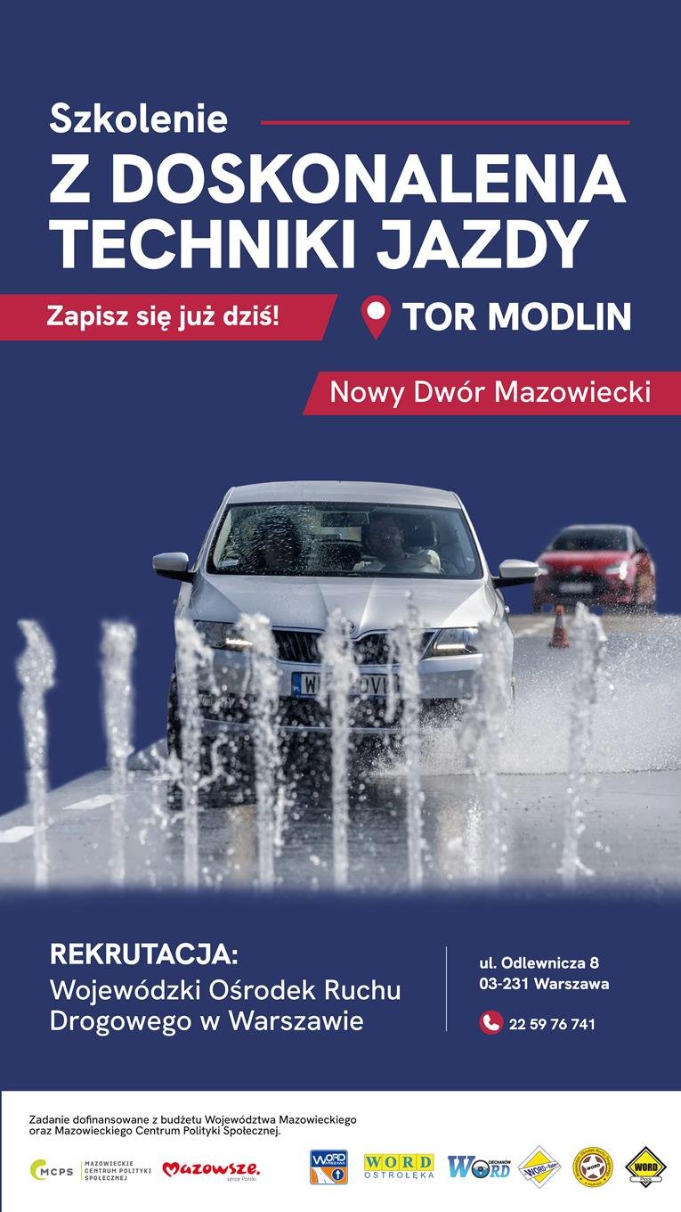 Województwo Mazowieckie wraz z Mazowieckim Centrum Polityki Społecznej oraz Wojewódzkimi Ośrodkami Ruchu Drogowego organizują kolejna edycję „Szkolenia profilaktycznego dla kierowców w wieku 18-24 lata, 25-54 lata oraz 55 i więcej” finansowaną w całości ze środków własnych. Wykonawcą projektu - wyłonionym w drodze przetargu - jest „Tor Modlin” Spółka z o.o. w Nowym Dworze Mazowieckim.